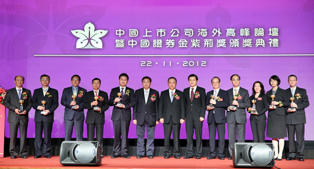 2012年11月22日,由大公報主辦,香港與內地多家知名管理機構、證券機構聯合舉辦的中國證券"金紫荊獎"在香港揭曉。中國建材股份有限公司(中國建材HK3323)榮獲"最具投資價值上市公司"和"最佳投資者管理上市公司"兩項大獎。這是中國建材繼2011年榮膺"最佳上市公司"獎后再獲殊榮。